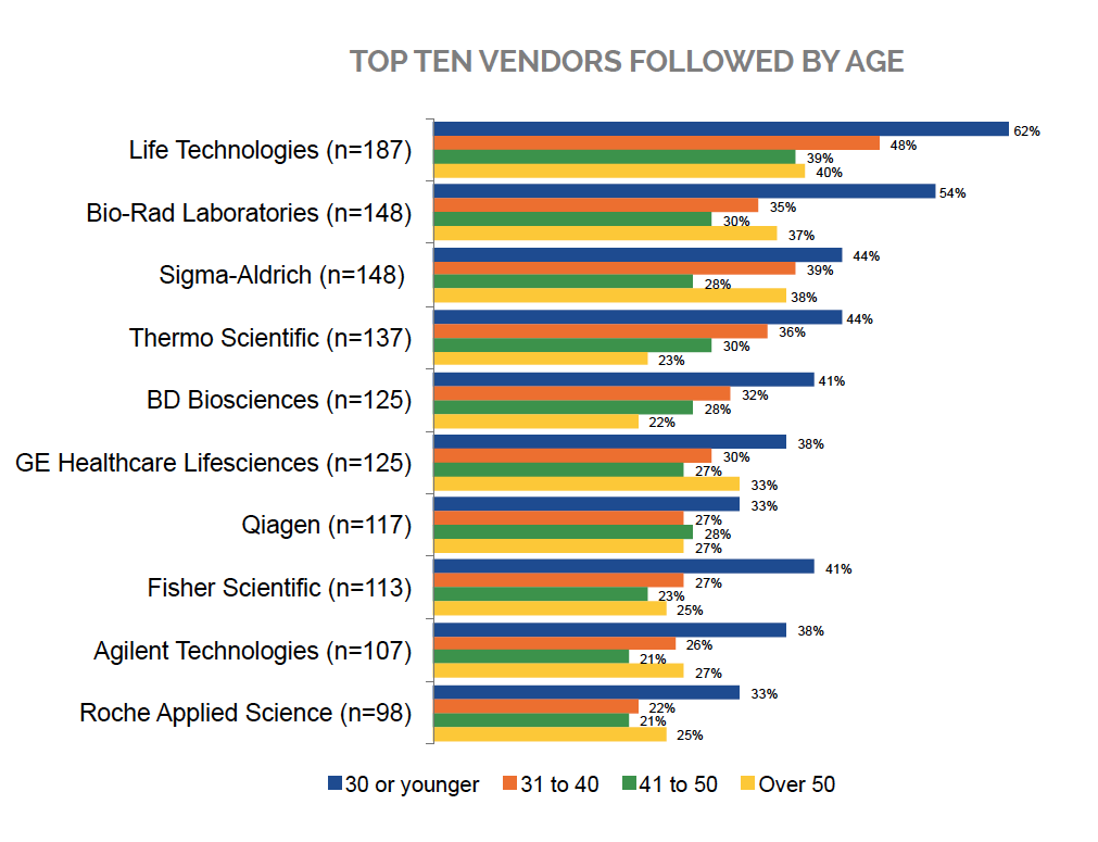 Younger scientists follow more life science vendors using social media.