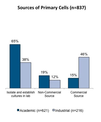 *Respondents in the industrial segment are three times more likely than academic respondents to purchase primary cells from a commercial source.
