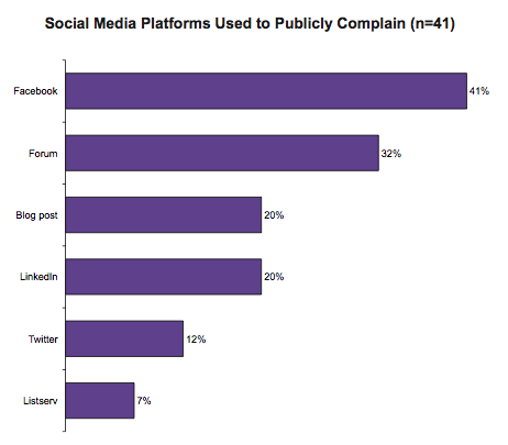 Of the 4% that report that they use social media platforms to publicly complain, the following depicts their preferred channels: